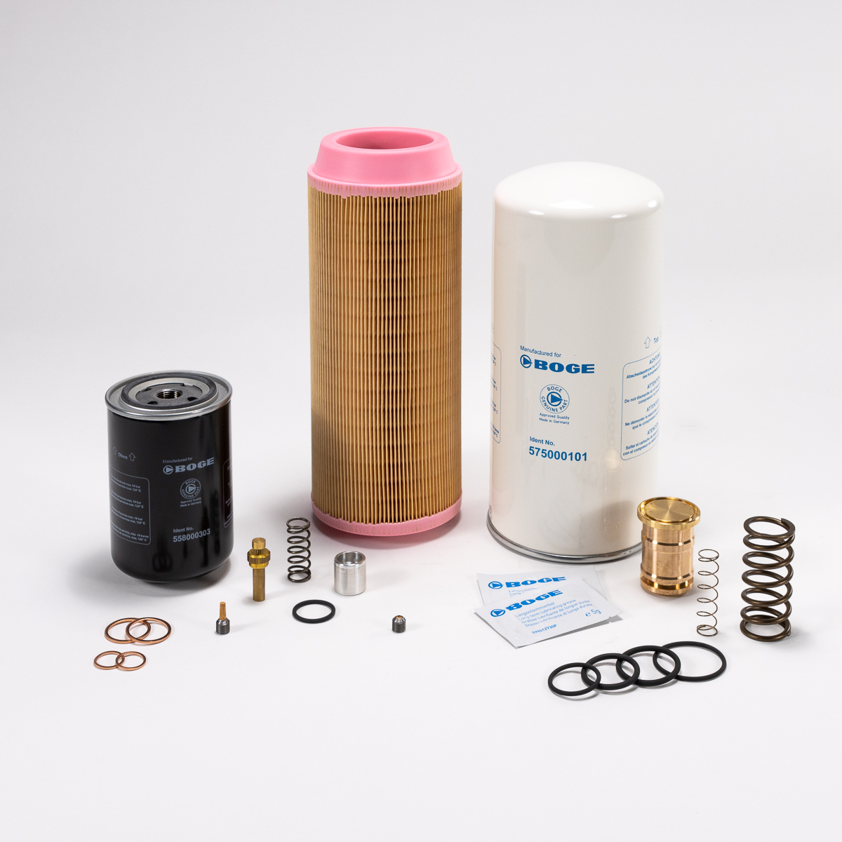 Cairpac-Kits wurden entwickelt, um Wartungsarbeiten übersichtlicher zu gestalten. Mit BOGE Cairpac erhalten Techniker ein komplettes Paket mit allen Komponenten, die sorgfältig ausgewählt wurden, um perfekt zusammenzuarbeiten. Dadurch wird sichergestellt, dass der Austausch von Verschleißteilen korrekt erfolgt und das System schnell und ohne Komplikationen wieder in Betrieb genommen werden kann.